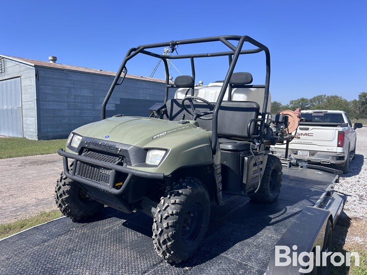 2008 Polaris Ranger 700 EFI 4x4 UTV W/Sprayer, 683cc Twin-Cylinder, Gas, Water Cooled Engine, 2 Forward Speeds, 1 Reverse Speeds, CVT Transmission, Hydraulic Brakes, AT26x8-12 Front Tires, AT26x12-12 Rear Tires, Aluminum Wheels, 155 Gallon Poly Tank, Honda Engine, Hand Wand, 60” Boom W 3) Nozzles, Raven MG Sprayer Control, NOTE: No Title, Odometer Does Not Light Up - Mileage Unknown, Engine Is Needs Attention, Dump Box Is Present But Not Installed, Trailer Is Not Included, NOT OPERATIONAL DAY OF LISTING, VIN: 4XARH68A584730207